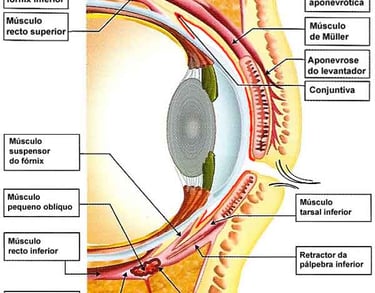 Músculos Extraoculares: Músculos que controlam os movimentos do olho.