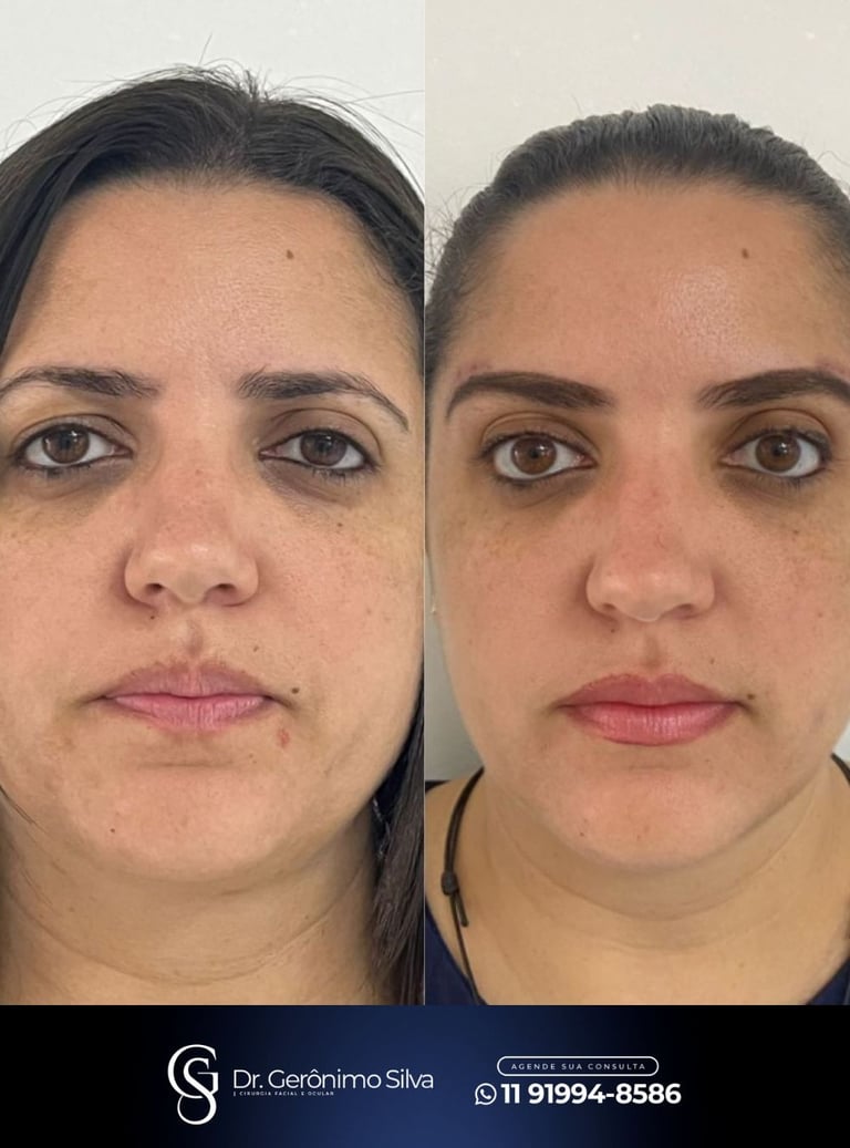 Elevação das sobrancelhas para melhorar a expressão facial e harmonia do rosto.