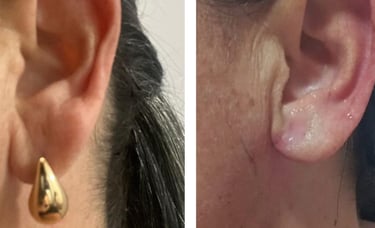Procedimento cirúrgico que visa reparar ou remodelar os lóbulos das orelhas, geralmente realizado para corrigir deformidades, lesões ou estiramentos causados por fatores como uso excessivo de brincos, traumas ou condições congênitas.